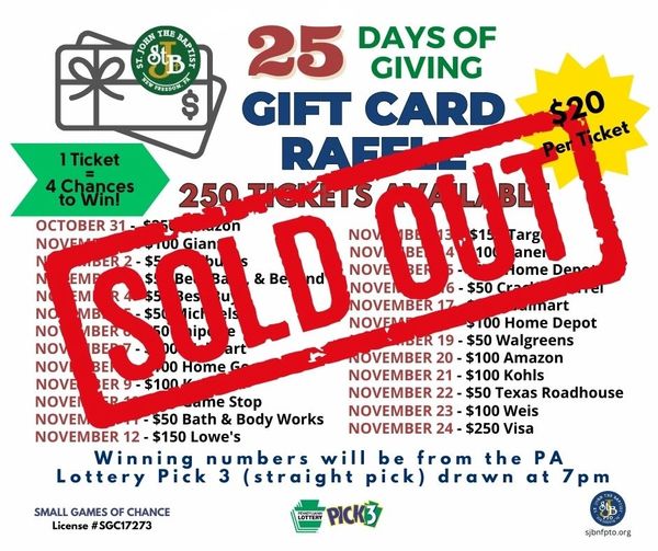 Starting October 31st through November 24th, winners will be called each day! At 7pm the evening Pick 3 number will be drawn to decide the winner. Good luck to our ticket holders!