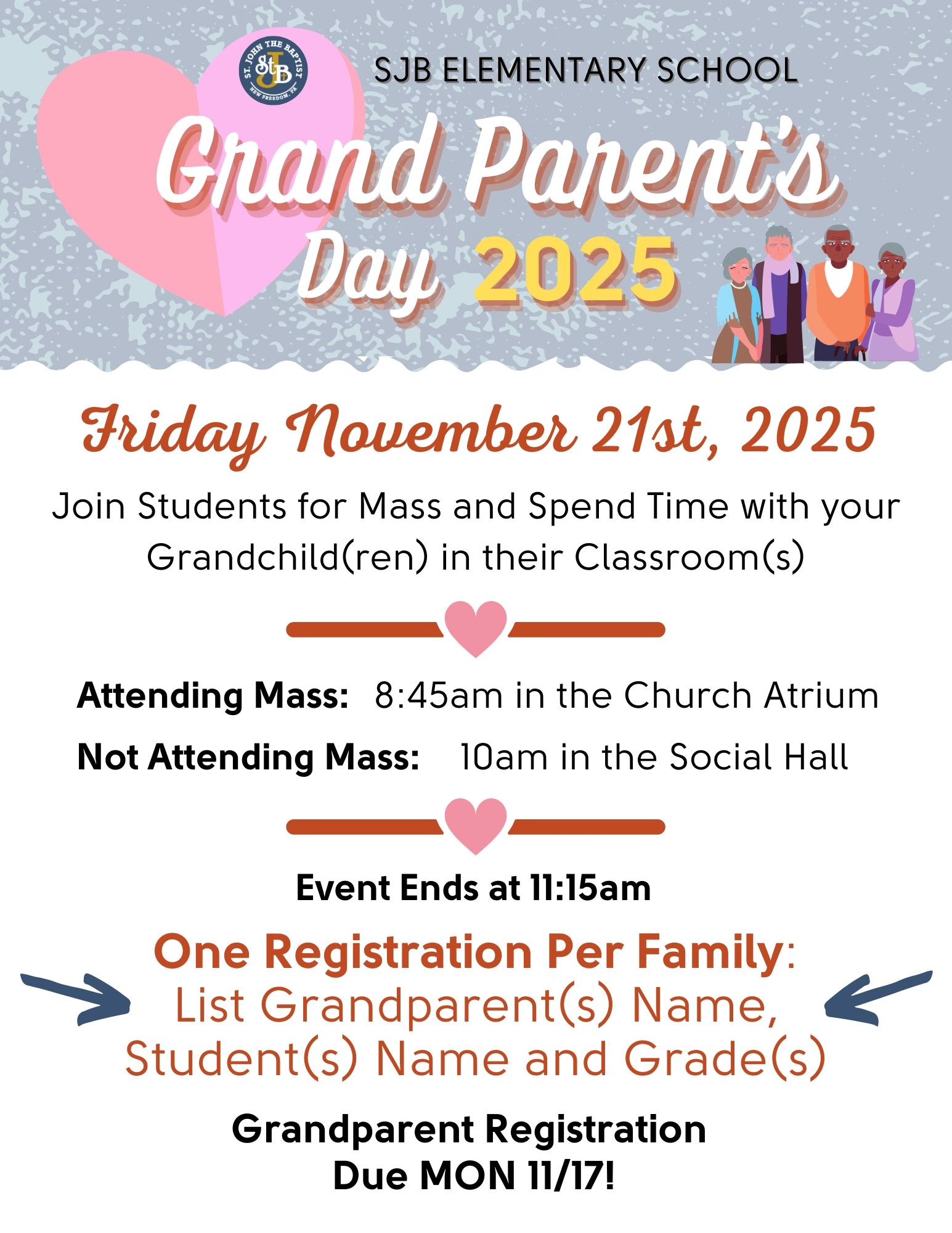 K - 6 Families ONLY: Register Grandparents that will be attending so we can get an accurate headcount. 1 form per family please.