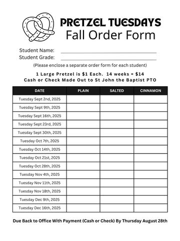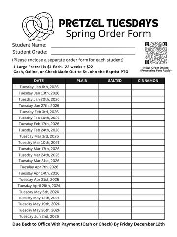 Pay online on Cheddar Up for Pretzel Tuesday orders! Processing and convenience fees apply. For pretzel orders we ask you still hand in the printed form for pretzel flavors for each student. Just write "Paid Online" on top of form