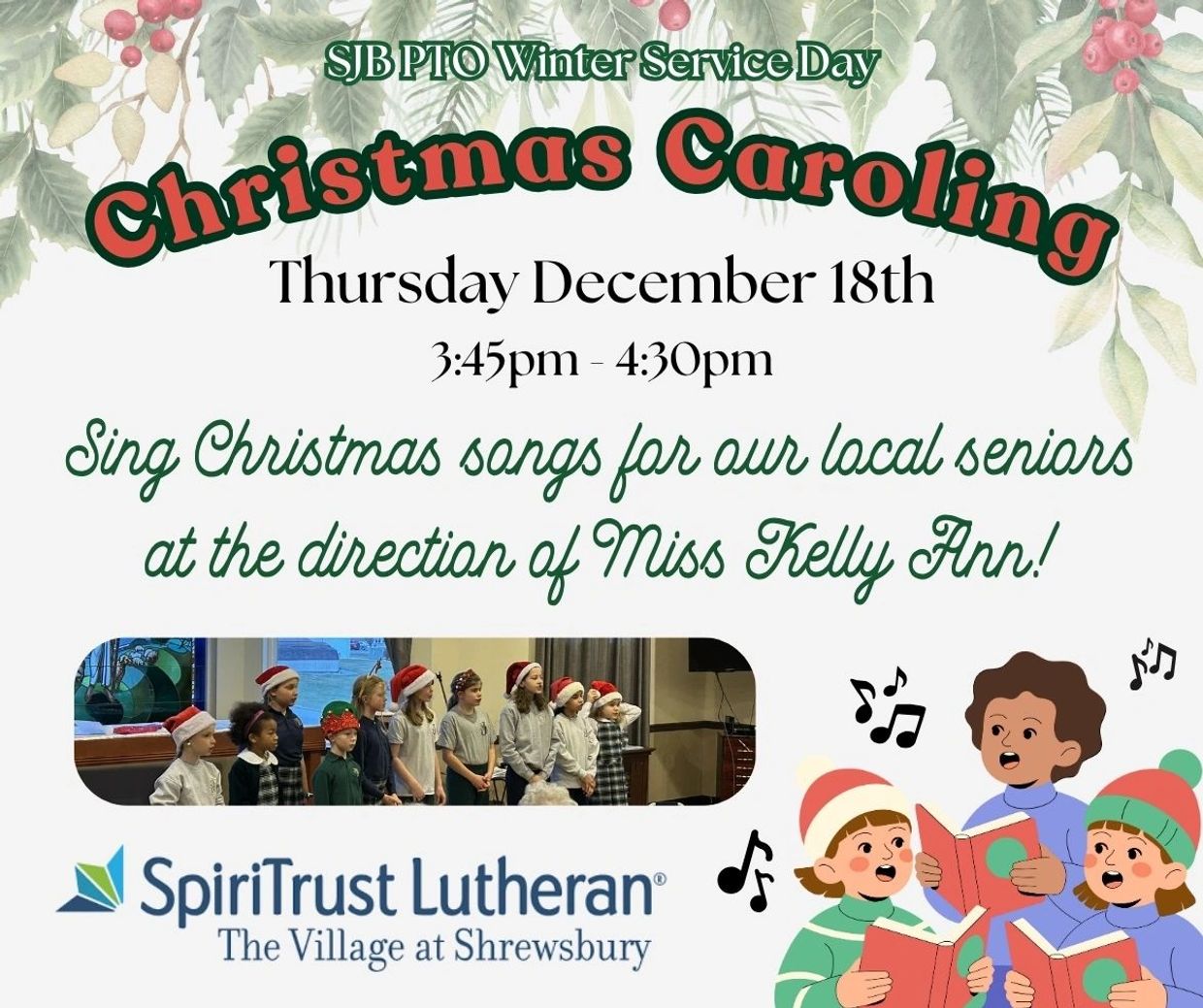 Sign-up to sing Christmas Carols to local senior residents at SpiriTrust Lutheran Retirement Home in Shrewsbury!